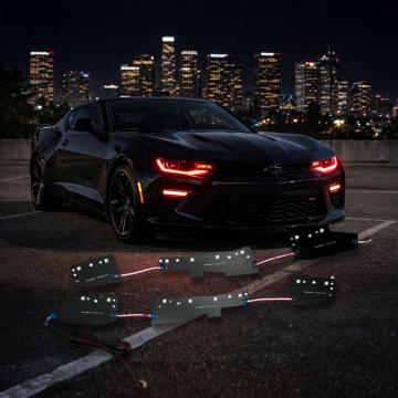 Transform the look of your 2016-2018 Chevrolet Camaro with our premium DRL Boards, designed as a seamless direct replacement for your factory daytime running lights. Available in RGBW and Flow Series, these boards bring full-color functionality to your Camaro, with the Flow Series offering mesmerizing color-chasing patterns for an even more dynamic appearance.