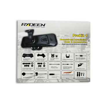 The TOMBO 360X comes with a proximity sensor, where it will automatically record if an object or person comes within 10 feet to your vehicle. There are also LED indicators on the mirror itself enabling blind spot detection by adding RYDEEN Blind Spot Radar Safety products with internal LED indicators (connector cable P/N EXT-026 and blind spot products are sold separately). Making the installation easy by eliminating the need to remove the A-pillar and drilling holes for installers.